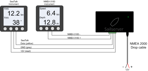 Sailserver kan forbindes til moderne instrumenter med NMEA 2000 eller SeaTalk NG, men også til klassiske instrumenter med NMEA 0183 eller SeaTalk 1.